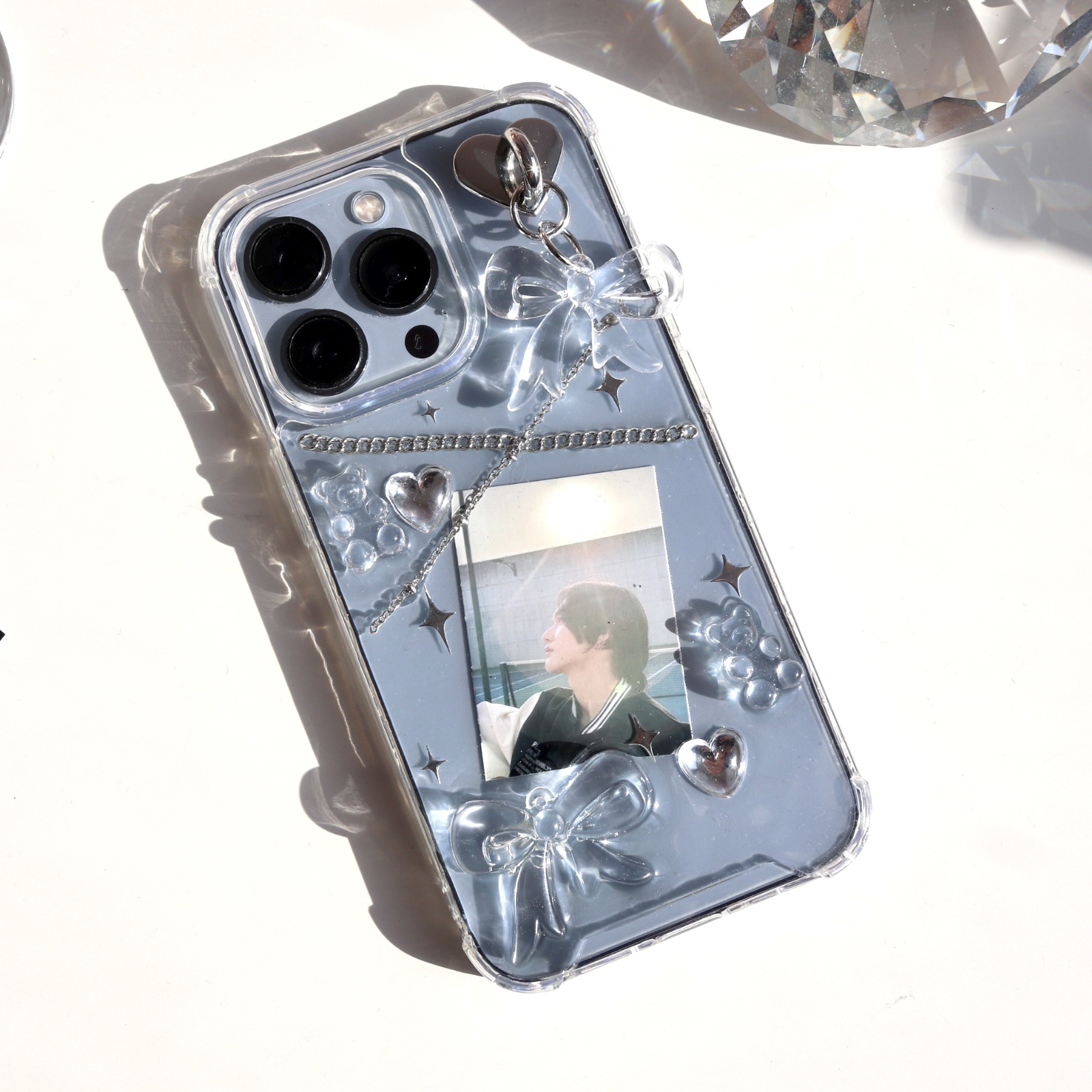 *made* 투명레진 실버체인크로스 아이폰 갤럭시폰케이스 갤럭시s24케이스 아이폰13미니 아이폰12미니 아이폰11프로
