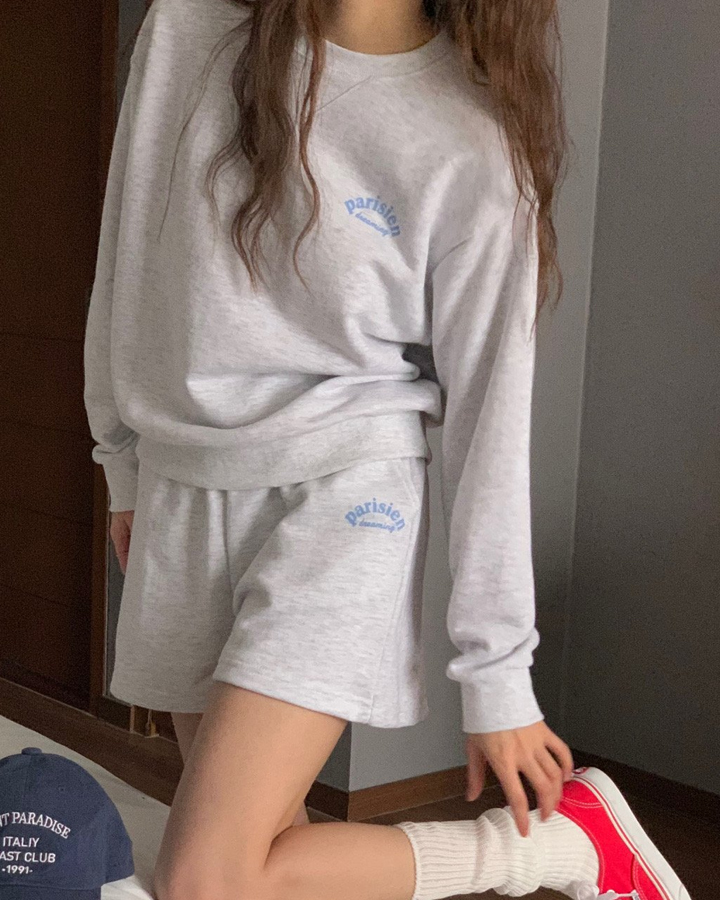여성 트레이닝 셋업 파리지앵 심플 레터링 프린트 맨투맨 반바지 세트(86790)