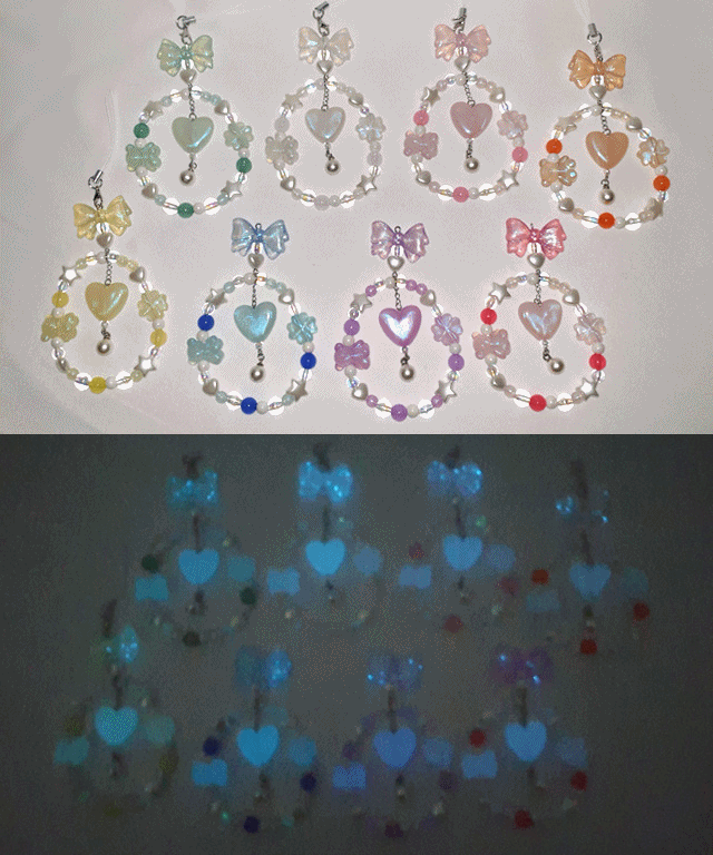 야광 발레코어 폰줄 키링 리본 하트벨 드롭 비즈 진주 별 스타 클로버 드롭 군번줄 책갈피 하트 부착 고리 휴대폰 핸드폰 걸이 스트랩 링 원형 오로라 인어펄 곰돌이 다이어리