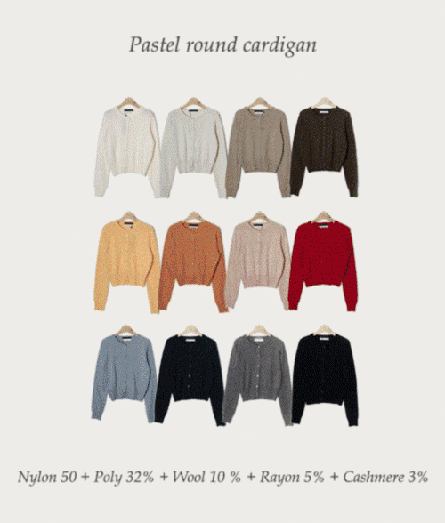 [2000장돌파/램스울+캐시미어]파스텔라운드가디건_12color 데일리룩/러블리/가디건/라운드/라운드넥/크롭/크롭가디건/니트/니트가디건