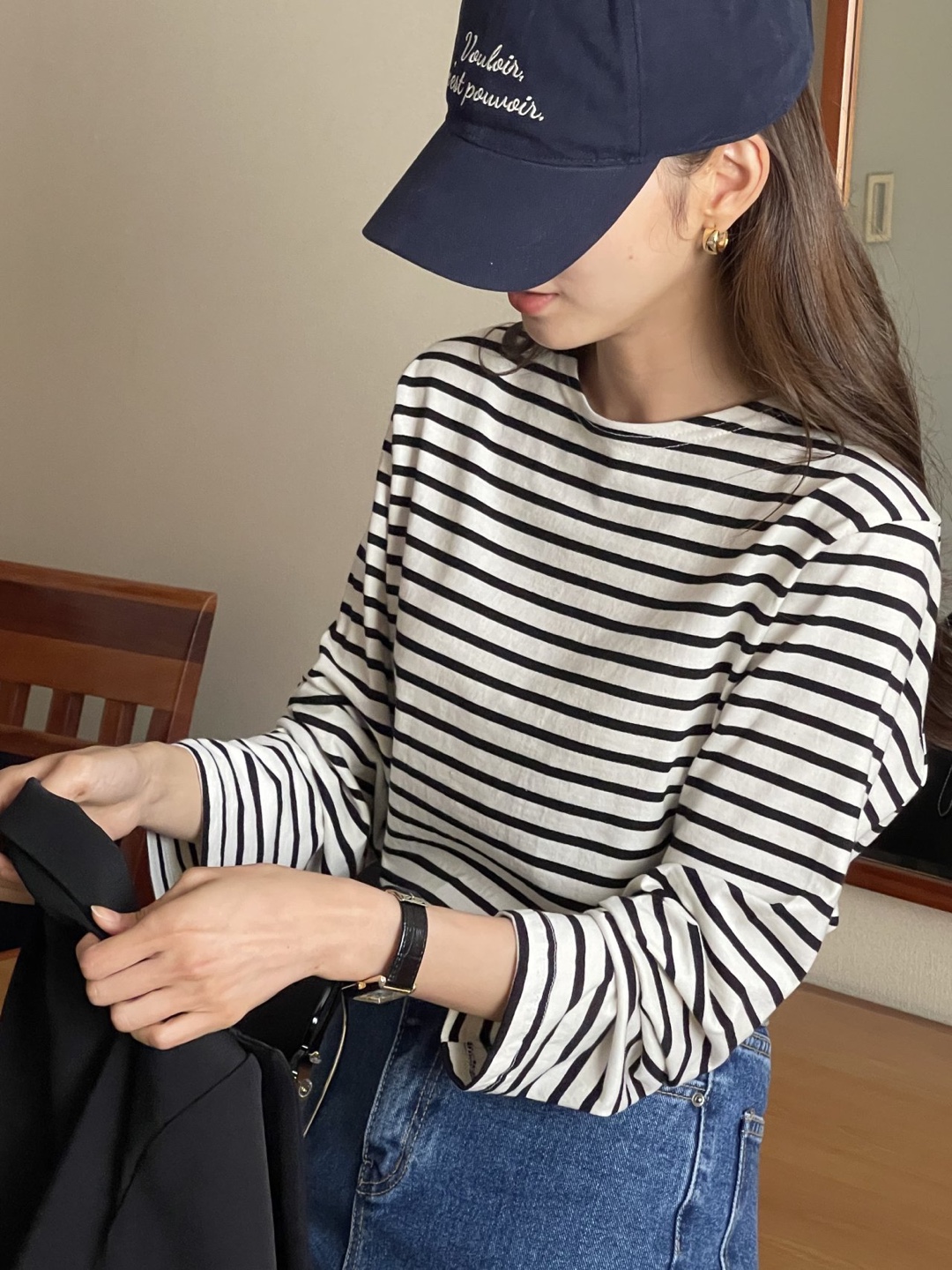[🖤4계절/기본티] 스트라이프 단가라 데일리 긴팔 티셔츠