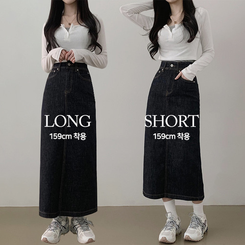 [S-XL/기장선택] 제브 하이웨스트 스티치 생지 데님 롱 스커트 (2color)