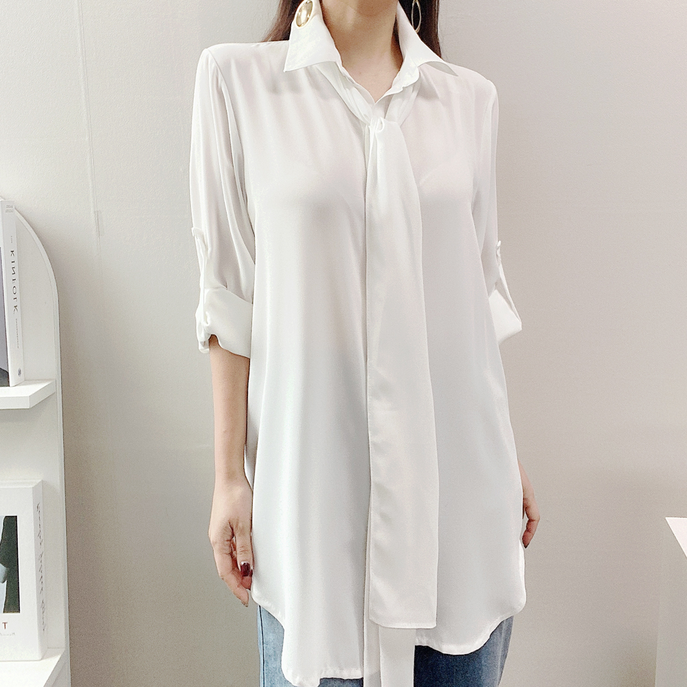 빅사이즈 타이 쉬폰 셔츠 롱 블라우스 2col