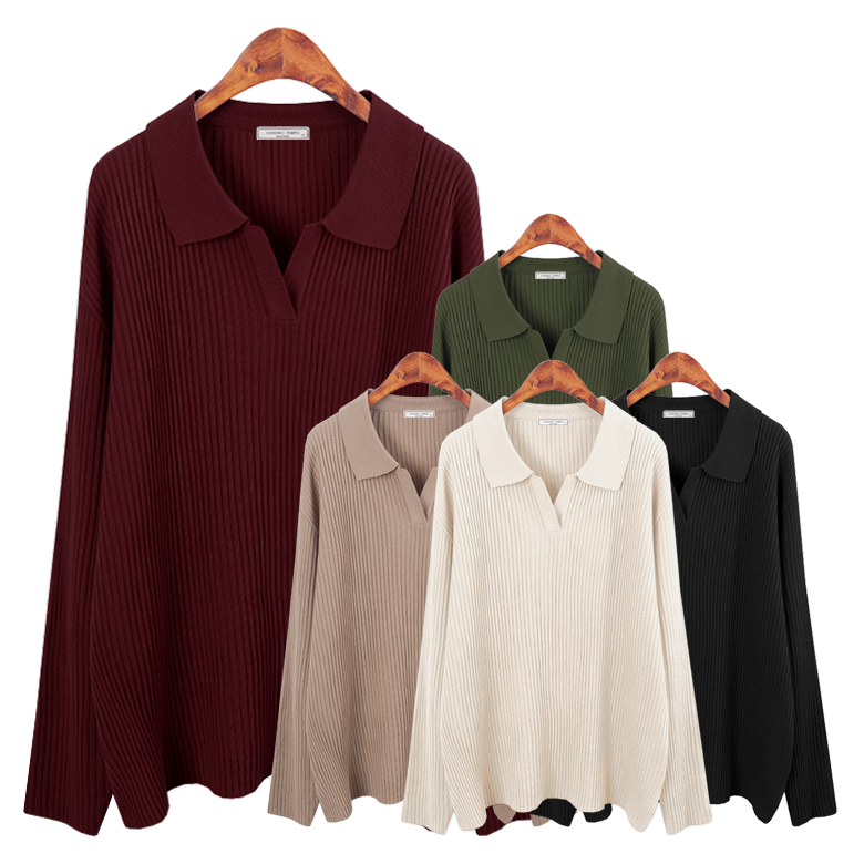 허밍퍼플 여성용 4331-비클 옆트임 골지 카라 빅사이즈 심플 니트 크롭 찰랑한 날씬 편안한 데일리룩 무지 여성의류