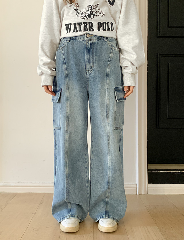 먼테리 밴딩 와이드 카고 데님 팬츠 73980