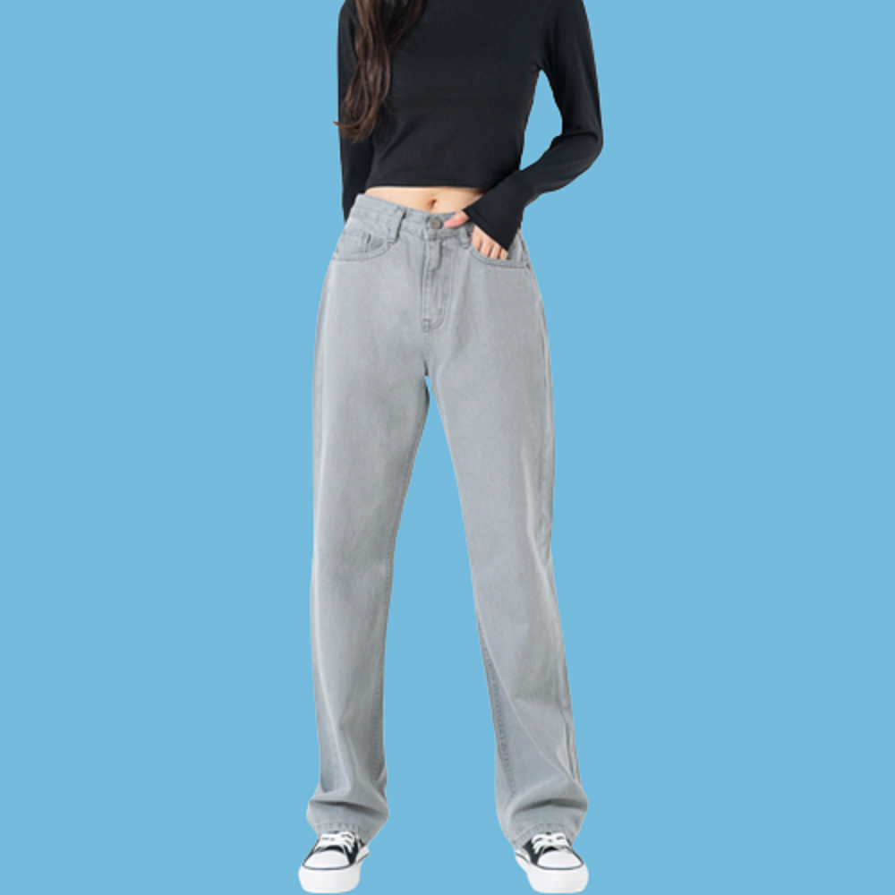 세미 와이드 청바지 그레이 빅사이즈 루즈핏 데님 바지