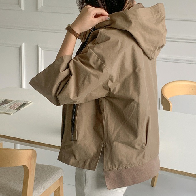 오드레 후드 트렌치자켓 숏사파리 숏자켓