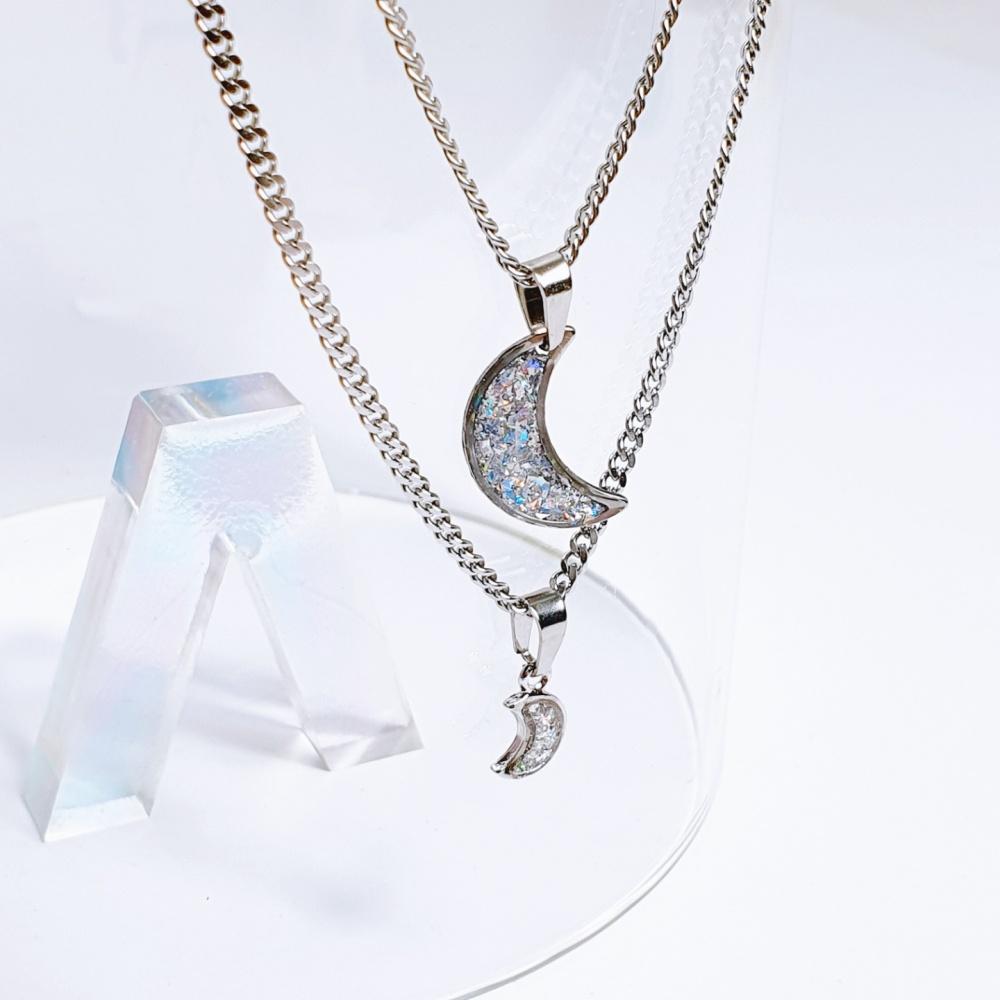 핸드메이드 은빛 달모양 학생목걸이 달목걸이