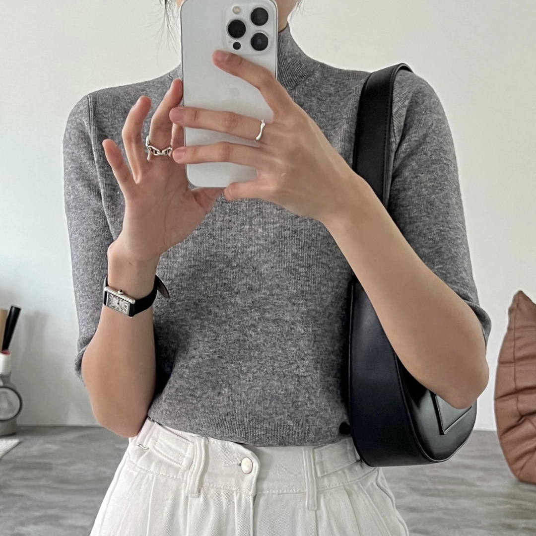 [탄탄한이너니트] 4컬러 2/4 반소매 베이직 심플 반 목폴라 니트