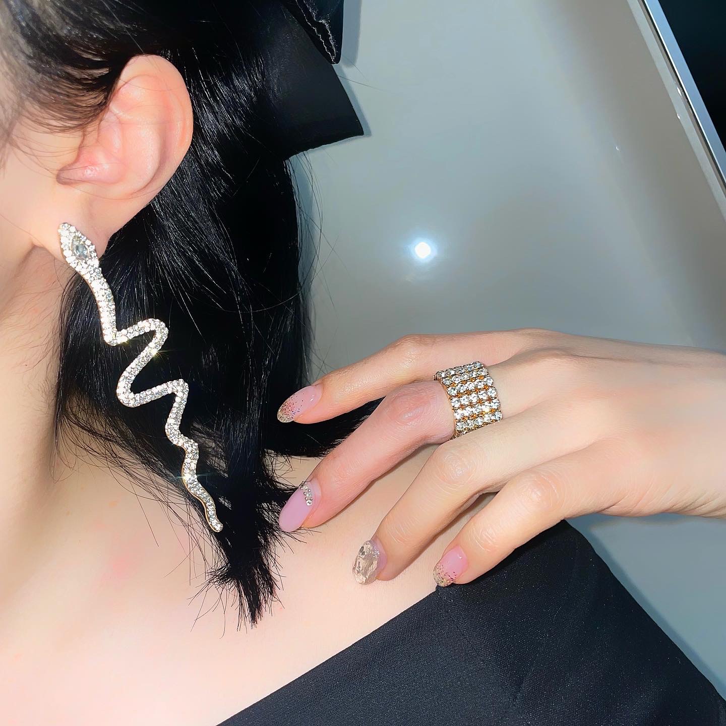 [당일배송] 럭셔리 스네이크 웨이브 뱀 드롭 귀걸이 파티 시상식 바디프로필 뮤지컬 시니어모델 벨리댄스