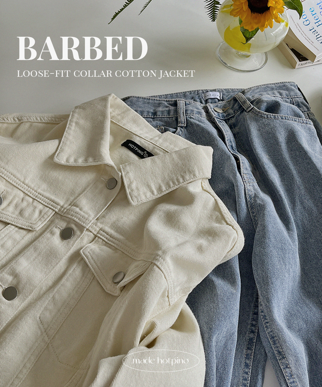 [MADE] 바벨드 루즈핏 카라 코튼자켓 (44~110) (빅사이즈아우터-빅사이즈자켓-세미크롭자켓-숏자켓-코튼재킷-면자켓-베이직아우터-점퍼-트러커자켓-체형커버-간절기-봄자켓)
