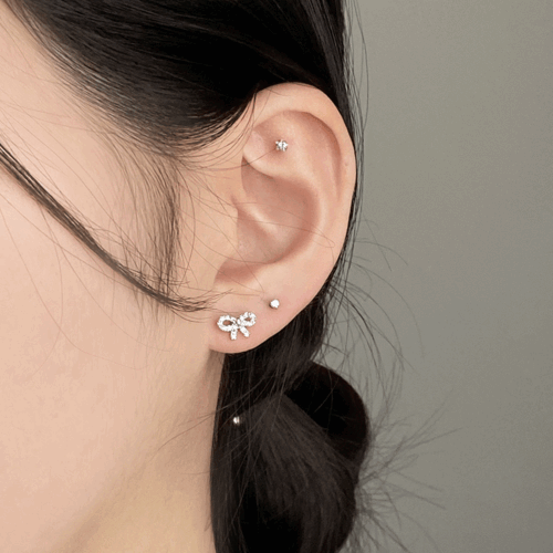 [3 set] 라운드 큐빅 리본 피어싱 세트 / 데일리 심플 러블리