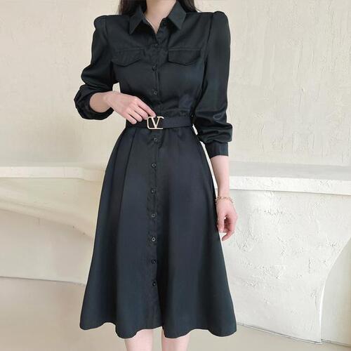 [발티노 카라 벨트셋트 원피스] 고급스러운 컬러감과 실루엣으로 포멀한 카라넥 라인으로 단정하면서도 세련된 무드의 벨트원피스 파티룩 연말룩 하객룩
