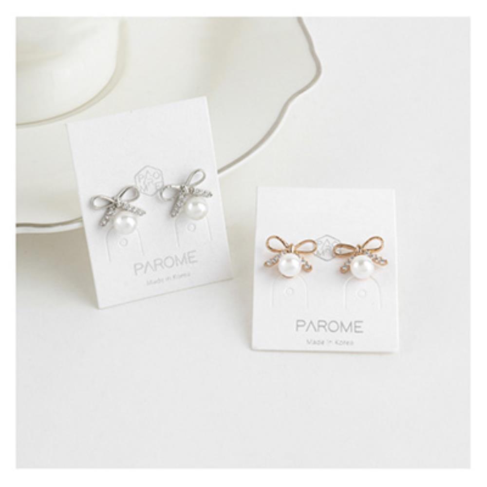 여자 리본 진주 미니 큐빅 스터드 이어링 귀걸이