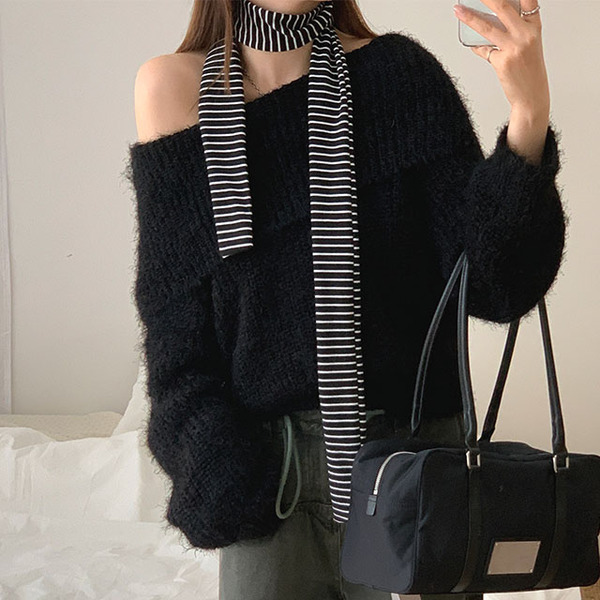 [간절기🌸] 타이 롱 스트라이프 슬림 머플러 가을 줄무늬 단가라 목도리