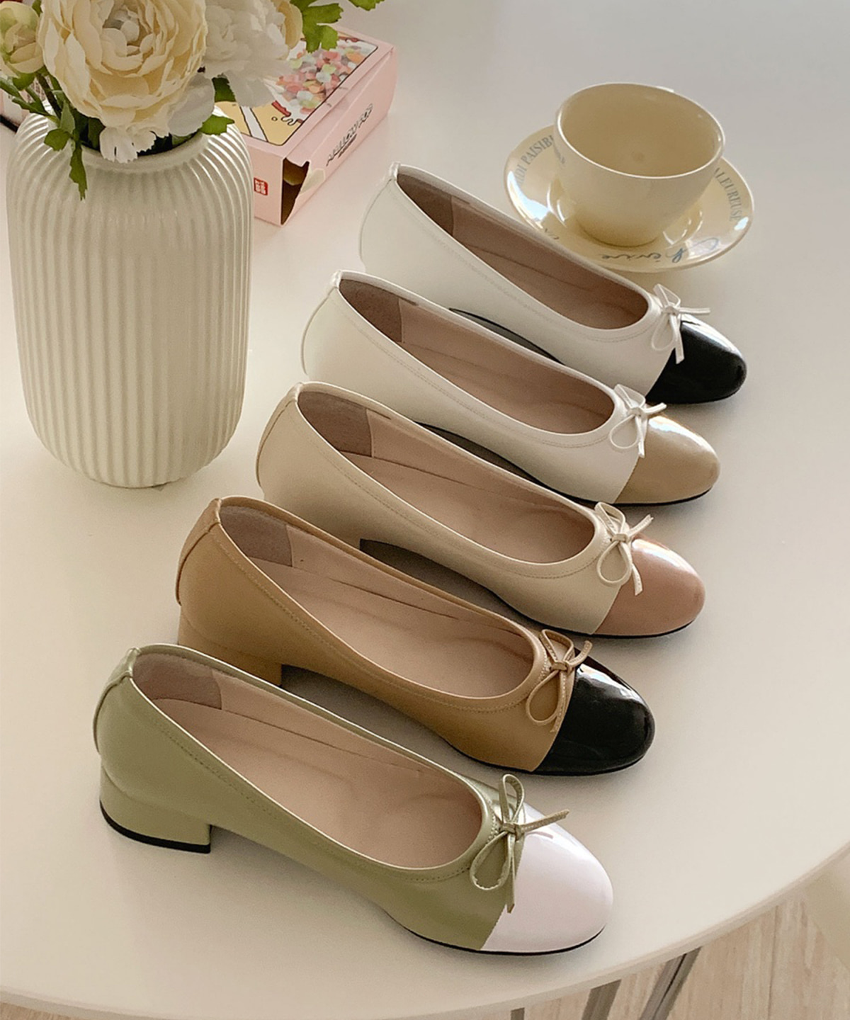 레이첼 투톤 리본 플랫 3cm