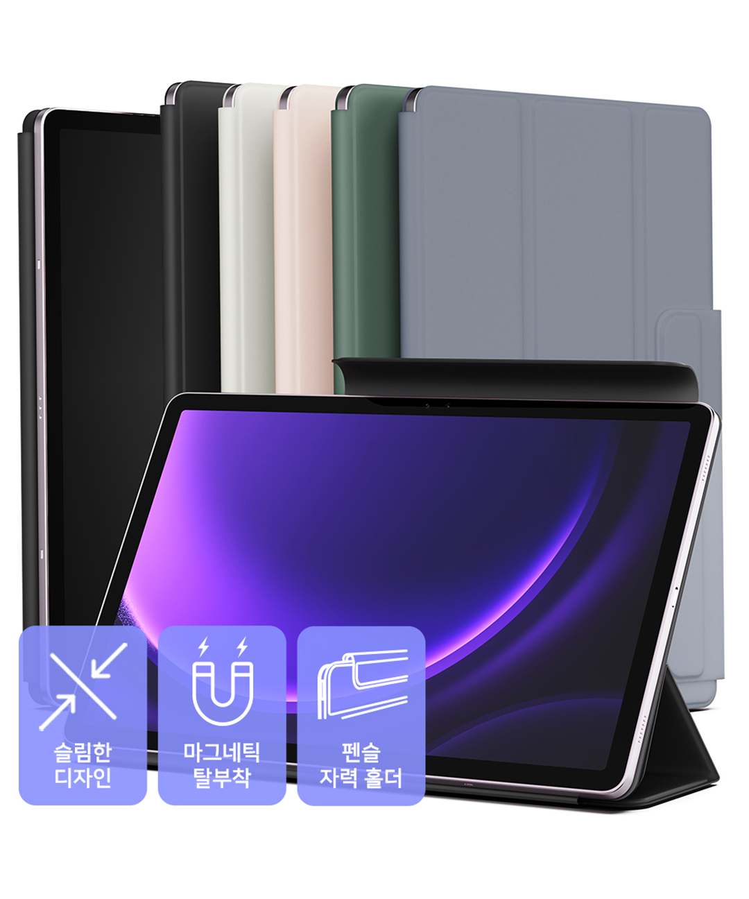 [당일/S펜수납] 2단거치 갤럭시탭 스마트커버💙 마그네틱 케이스 자석부착S펜 수납⭕자석거치 거치대 갤탭 갤럭시탭S10 S9 S8 S7 S6 울트라 플러스 라이트 FE