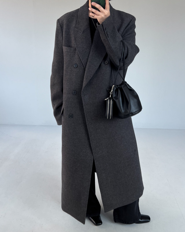 울 박시핏 롱 코트 ( 차콜 블랙 ) 롱기장 오버핏 더블