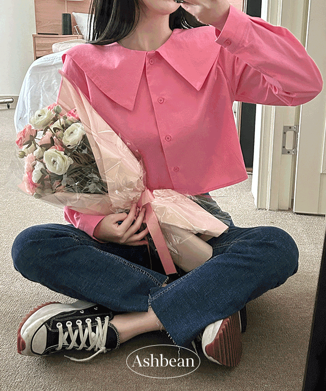 [봄이왔나봄🌸] 베아트리체 빅카라 크롭 숏 코튼 면 세일러 셔츠 블라우스