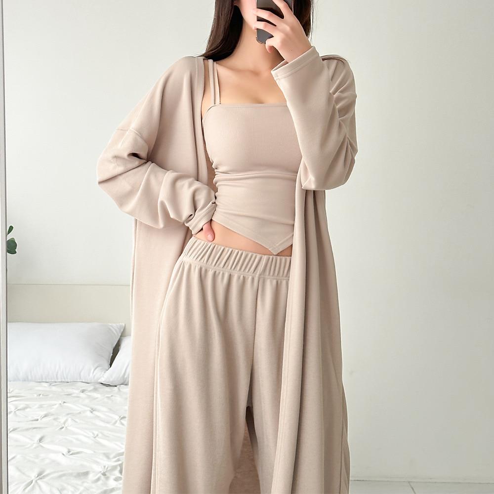 여자 봄 홈웨어 라운지 사선 끈나시 롱 가디건 세트
