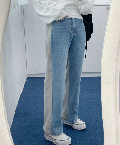 뒷밴딩 와디드핏 반반 데님 봄청바지 (2color)