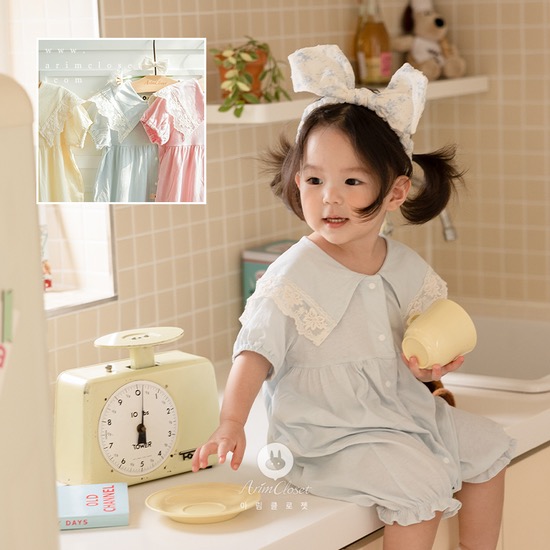 우리 아가의 어여쁨이 여름 햇살에 눈부셔요 :) - yellow, pink, blue lace point baby cotton all open bodysuit