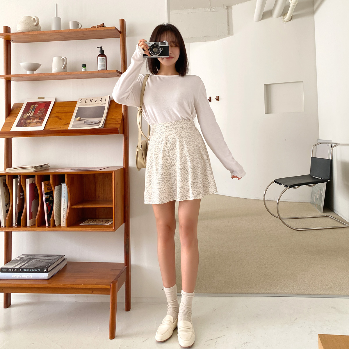 달르벤 뒷밴딩 잔꽃 패턴 플레어 미니 스커트