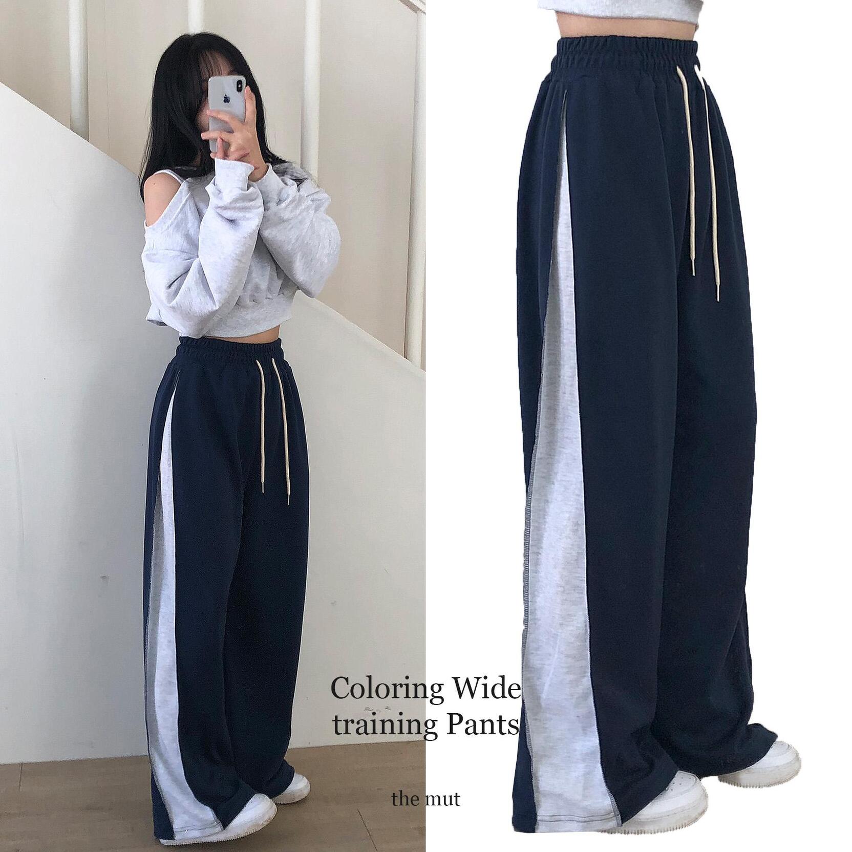 [다리길어보이는 핏!]배색 포켓 스티치 와이드 밴딩 트레이닝 추리닝 팬츠 바지