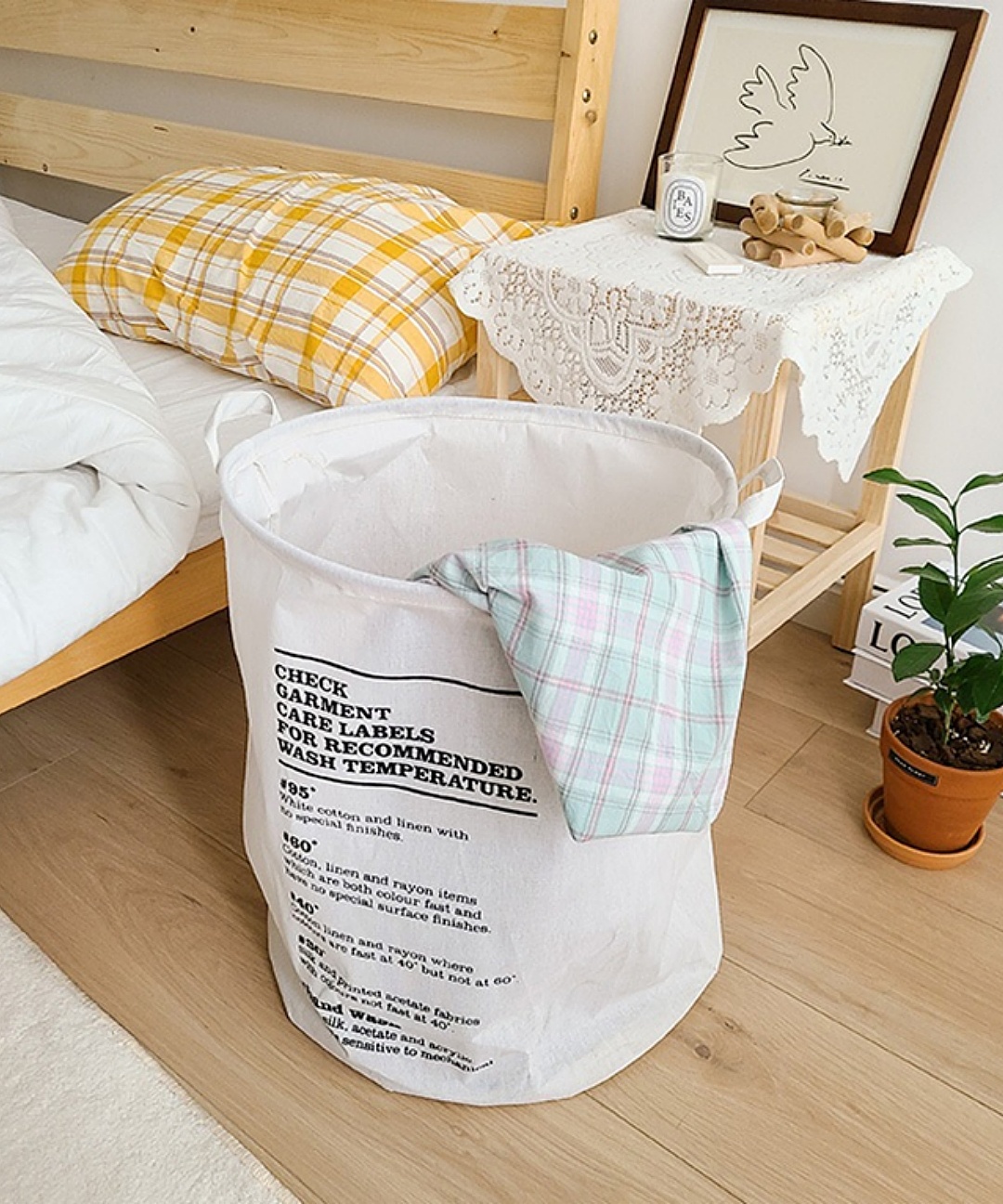 미니멀 빈티지 패브릭 접이식 손잡이 빨래바구니 이동식 빨래통