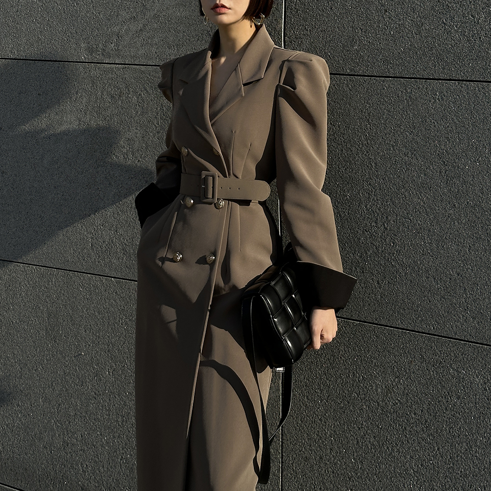 퍼프소매 더블 원피스 롱코트(원피스로 착용가능)(벨트set) JK496 [당일출고]