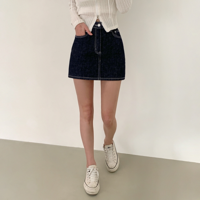 [물빠짐X/속바지O] 리코 논페이드 스티치 청치마 탄탄 생지 미니스커트