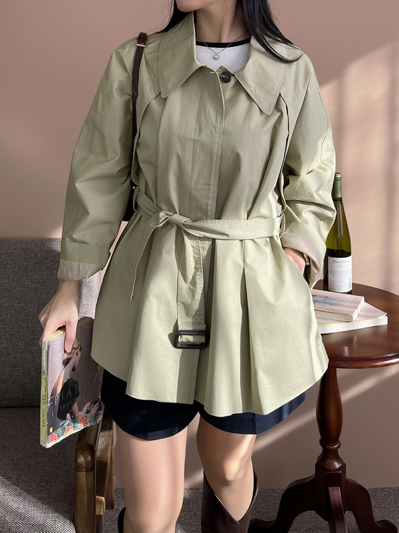핀턱 하프 숏 트렌치코트 (3 colors)