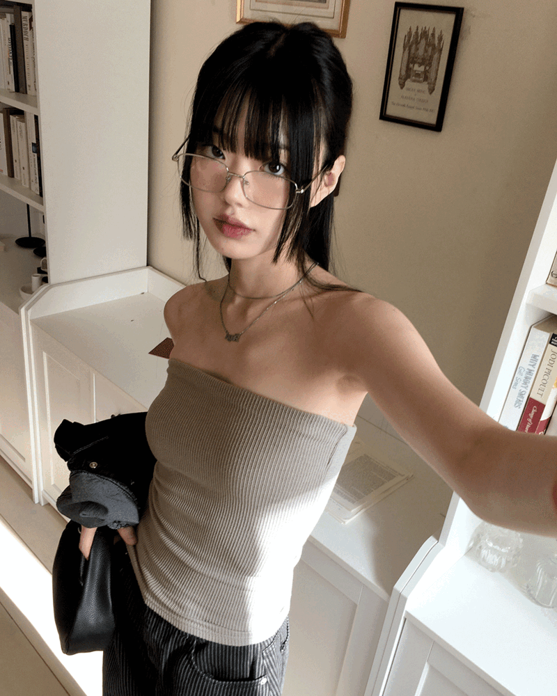 포빈 레이어드 골지 니트 탱크탑 튜브탑