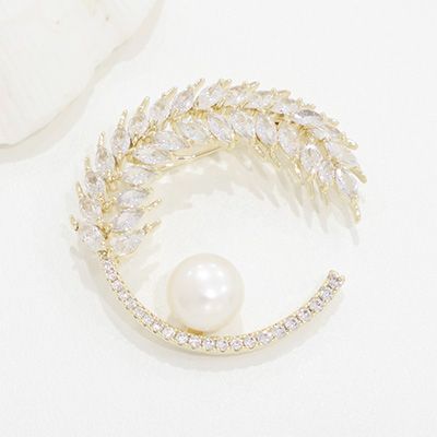 여자 깃털 화려한 큐빅 금색 테두리 진주 브로치