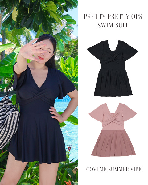 [XL-5XL/빅사이즈] 예쁨예쁨 원피스 수영복 체형커버 반팔 랩 셔링 배색 래쉬가드