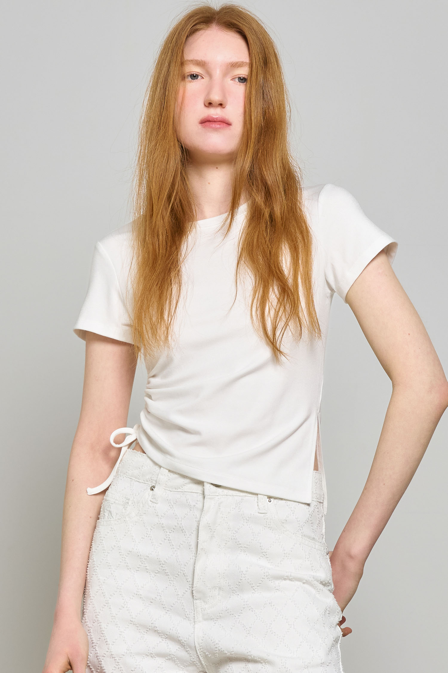 WOMAN 셔링 반팔 티셔츠 [WHITE]