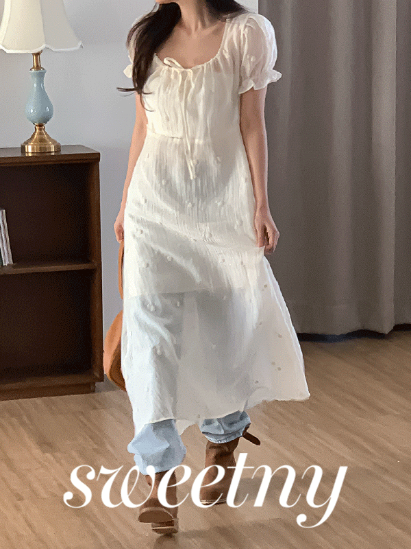 [인기] 블랑쉬 플라워 자수 셔링 쉬폰 롱 원피스 레이어드