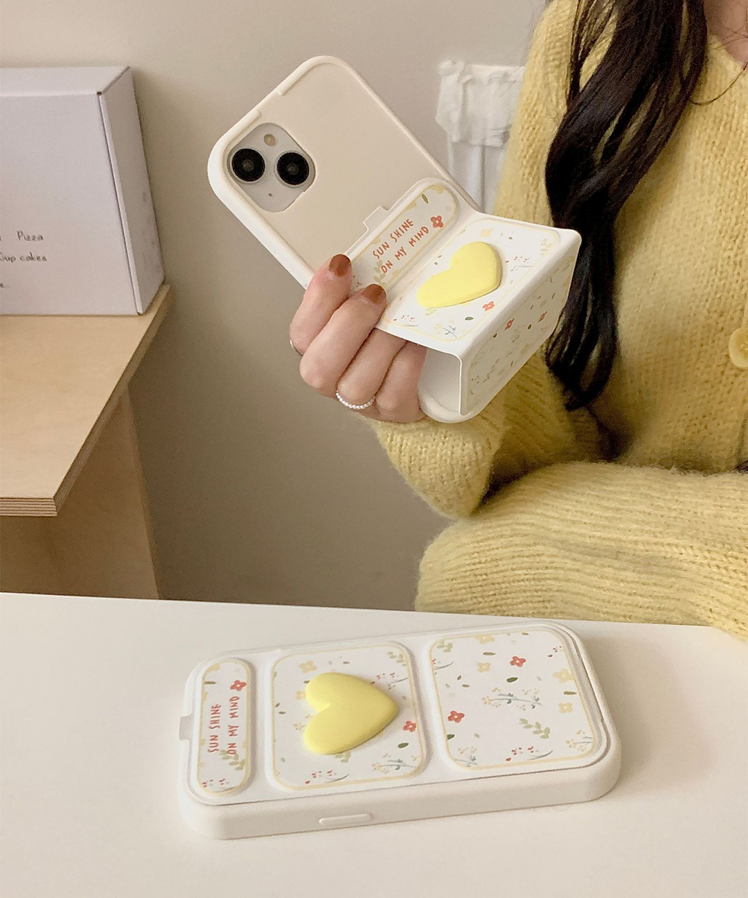 아이폰 옐로 하트 플라워 거치대 실리콘 젤리 봄 귀여운 심플 범퍼 유니크 특이한 우정 핸드폰 휴대폰 애플 폰 케이스 아이폰케이스 11 12 13 14 15 프로 프로맥스
