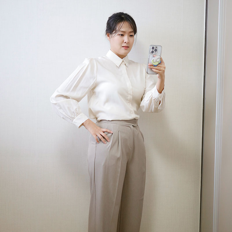 [부해보이지않아요] 통통녀 셔츠 퍼프 슬림핏 기본핏 예쁜 아이보리 레이어드 긴팔 블라우스