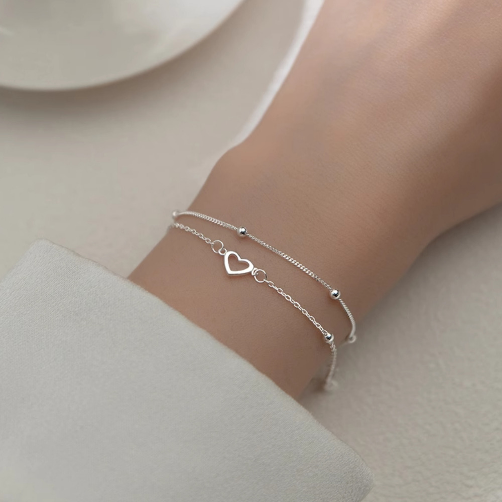 [당일출고🚚] 925 실버 볼 체인 두줄 하트 은팔찌