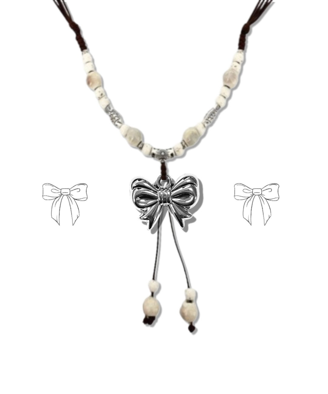 ribbon 백송석 통통 리본 원석 목걸이 가죽 모리걸 빈티지