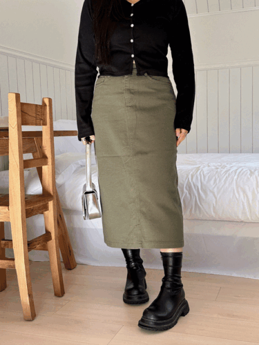 991 코튼 뒷트임 H라인 롱 스커트[3color/S-L]