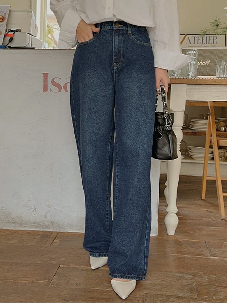 [25-36] 로브리틴 워싱 뒷밴딩 와이드 데님 팬츠 청바지 ( 봄-가을-빅사이즈-캐주얼룩-데일리룩-데이트룩-캠퍼스룩-출근룩-36사이즈-자체제작-샌드워싱-코튼-스티치-편안한-심플한-기본템-베이직-통통녀 )