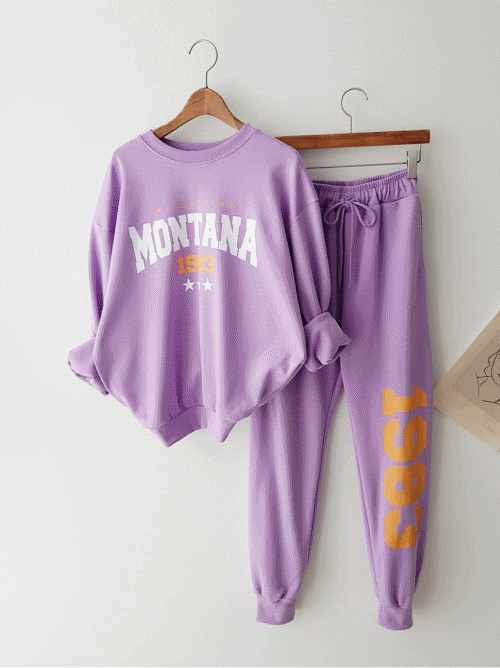[데일리SET] ⭐️MONTANA 1983 SET⭐️ 컬러 레터링 프린트 루즈핏 맨투맨티셔츠 밴딩 조거바지 조거팬츠 투피스 봄신상 트레이닝 세트 꾸안꾸 홈웨어 추리닝세트