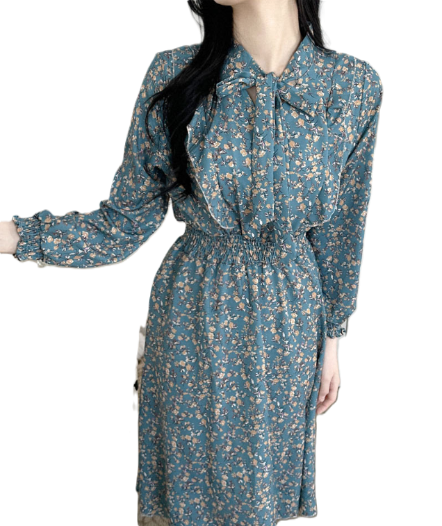 [3컬러/2사이즈] 꽃무늬리본원피스 여성원피스 플라워원피스 꽃무늬원피스 원피스 여자원피스 봄 가을 리본원피스 프릴원피스 쉬폰원피스 여성롱원피스 여자롱원피스 데이트룩 하객룩