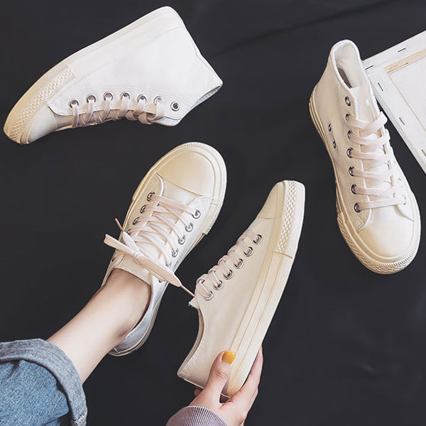로우 하이 흰색 캔버스화 올백 스니커즈