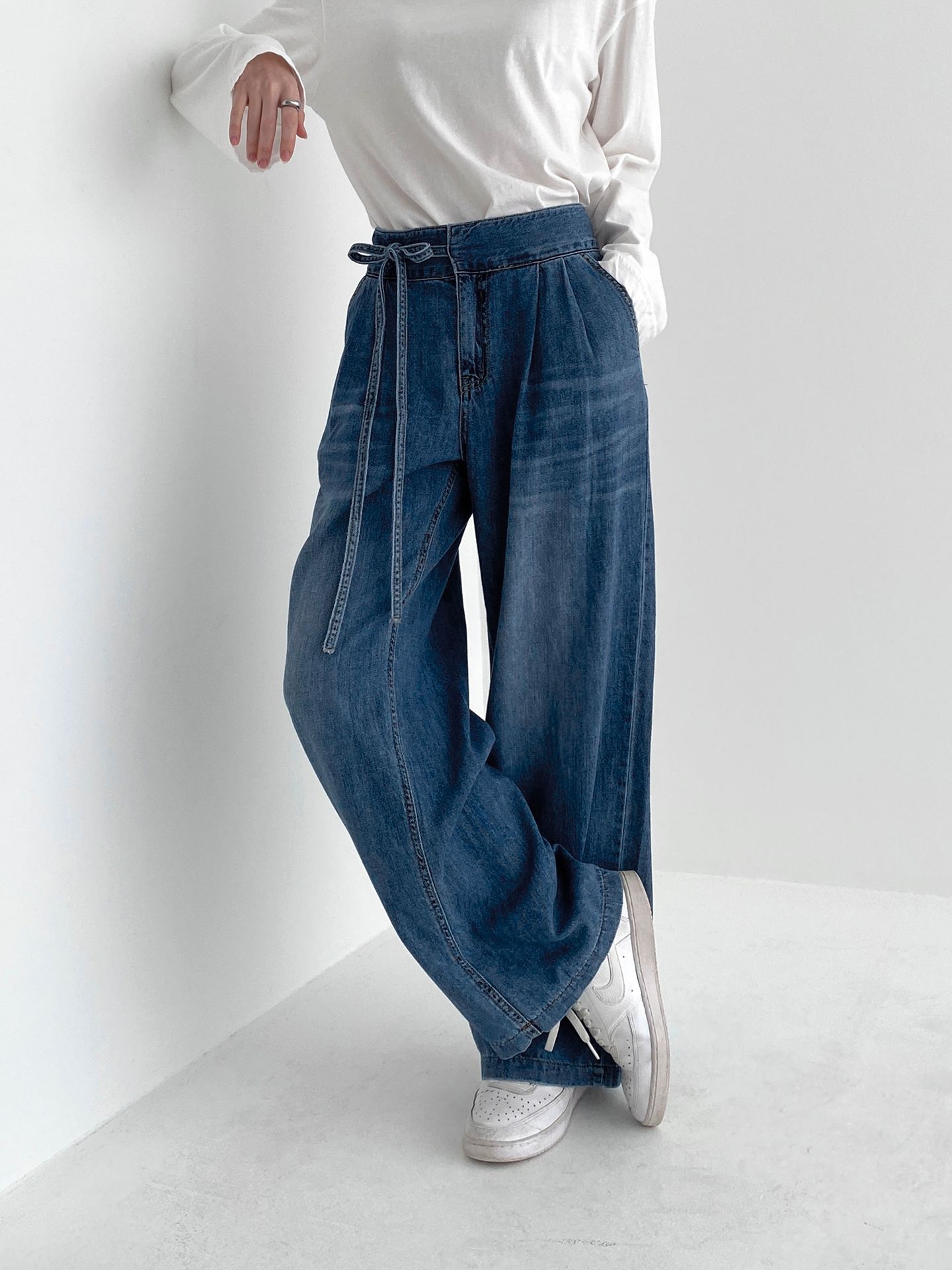 신상)5014번 (봄신상 투오비 허리 스트랩 포인트 와이드 청바지 ) - S(55), M(66), L(77)