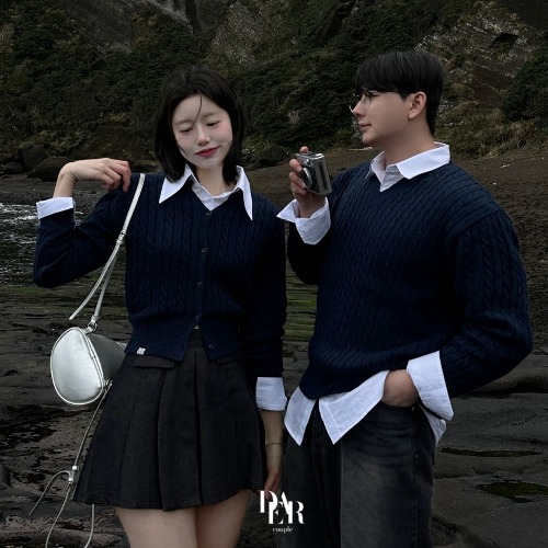 [🔥디어MADE🔥/폭닥소재❄️] 뮤즈 캐시미어 꽈배기 브이넥 커플니트 봄 겨울 삿포로 커플 시밀러룩