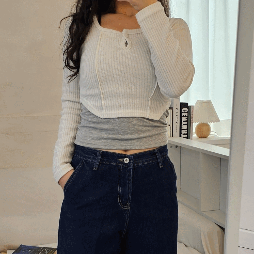 [봄신상] 스퀘어넥 쓰리버튼 크롭 티셔츠 3컬러
