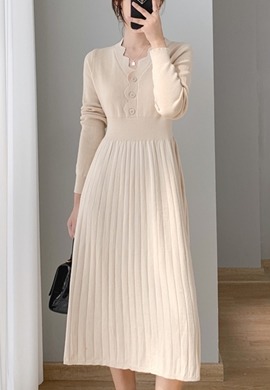 니트 라인 여성복 원피스 캐주얼 컬러 플리츠